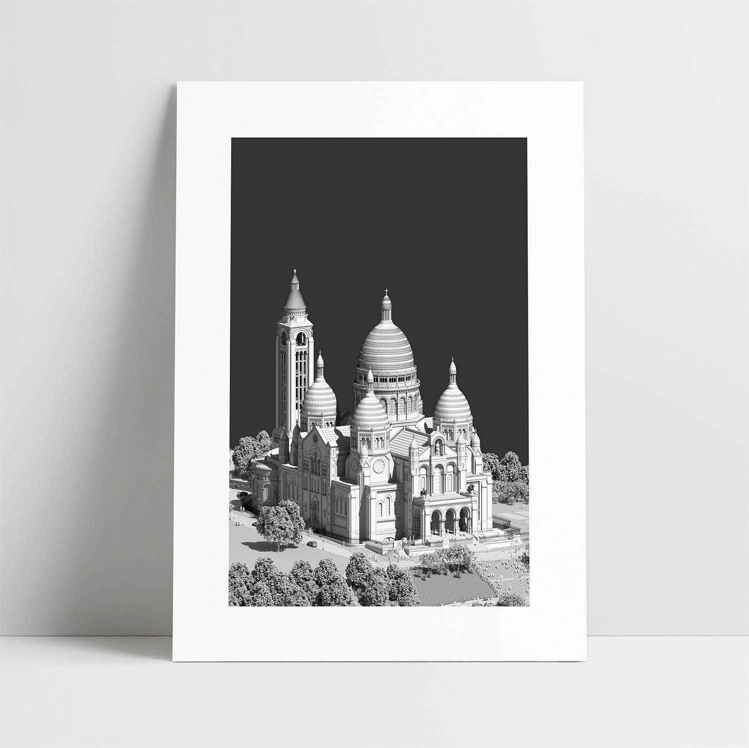 Illustration du Sacré Coeur à Paris, réalisée en 3D et exportée pour impression.